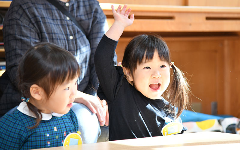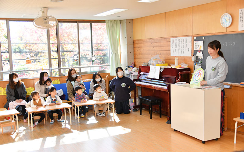 | 指導内容 | 体育・音楽・言語・絵画他、幼稚園生活に準じる活動(お母さんと一緒に行います)。集団に慣れる・自立心を養う・幼稚園に慣れる。 |