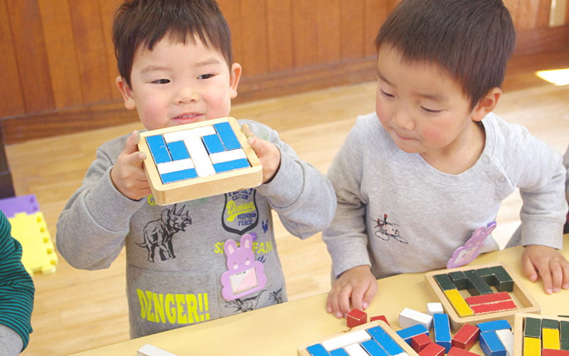 図形を展開したり形を合わせて答えを導き出したり…遊びの中から沢山のことをどんどん吸収していく幼児期。
