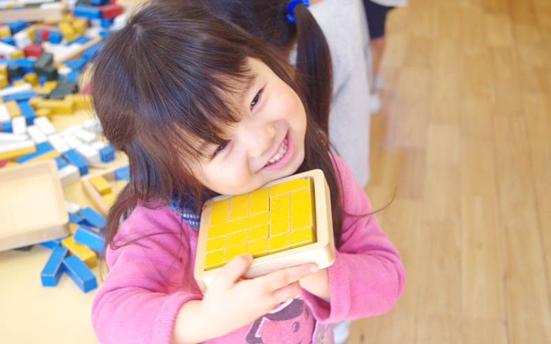 積木教材に触れれば触れるだけ様々な感覚を養っていきますので、先ずは積木あそびが楽しいという環境を作っていきます。